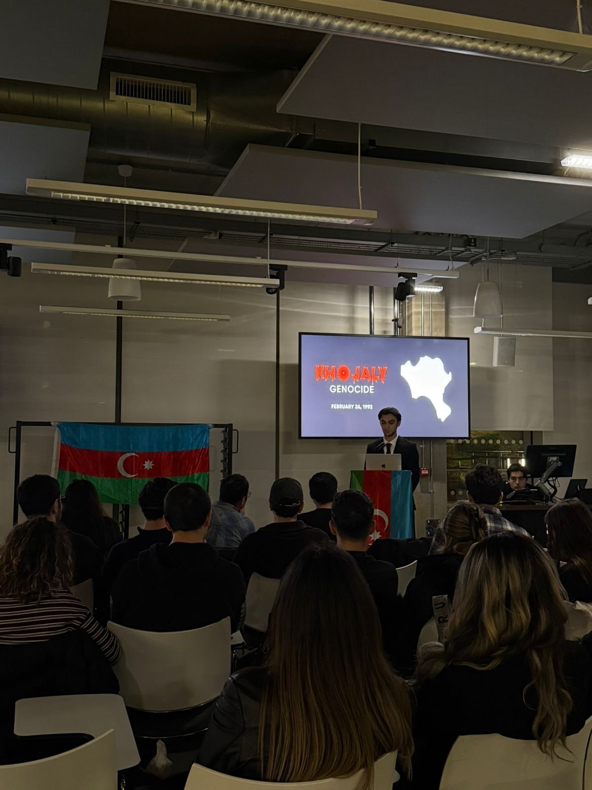 Universitetdə fəaliyyət göstərən Azərbaycan Tələbə Cəmiyyətinin rəhbəri Əli Xəlilov çıxış edərək iştirakçılara Xocalı faciəsinin başvermə şəraiti, tarixi kökləri və doğurduğu ağır humanitar nəticələr barədə ətraflı məlumat təqdim edib. O vurğulayıb ki, bu faciə Azərbaycan xalqının kollektiv yaddaşında dərin və sağalmaz iz buraxıb.